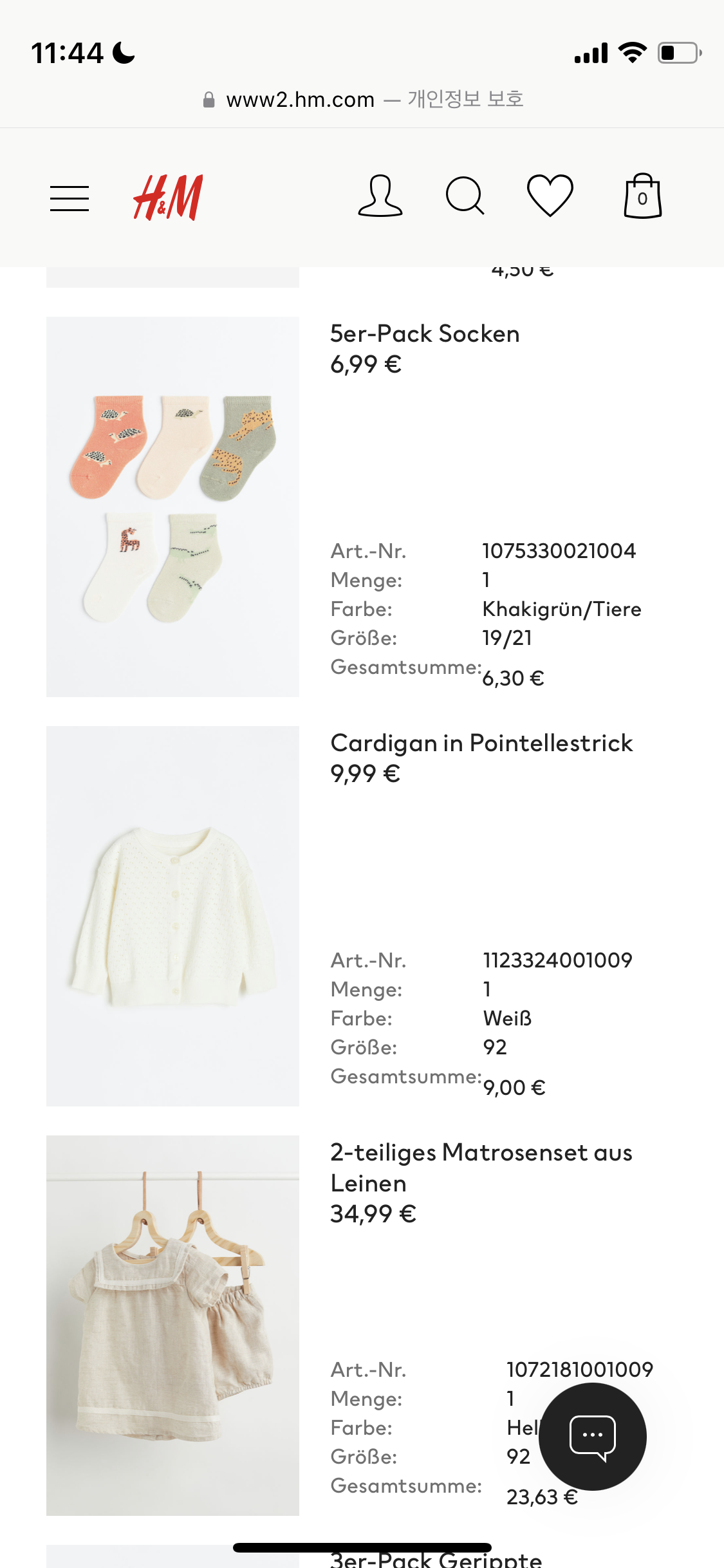 H&M 아기옷 직구 쇼핑 리스트, 금액