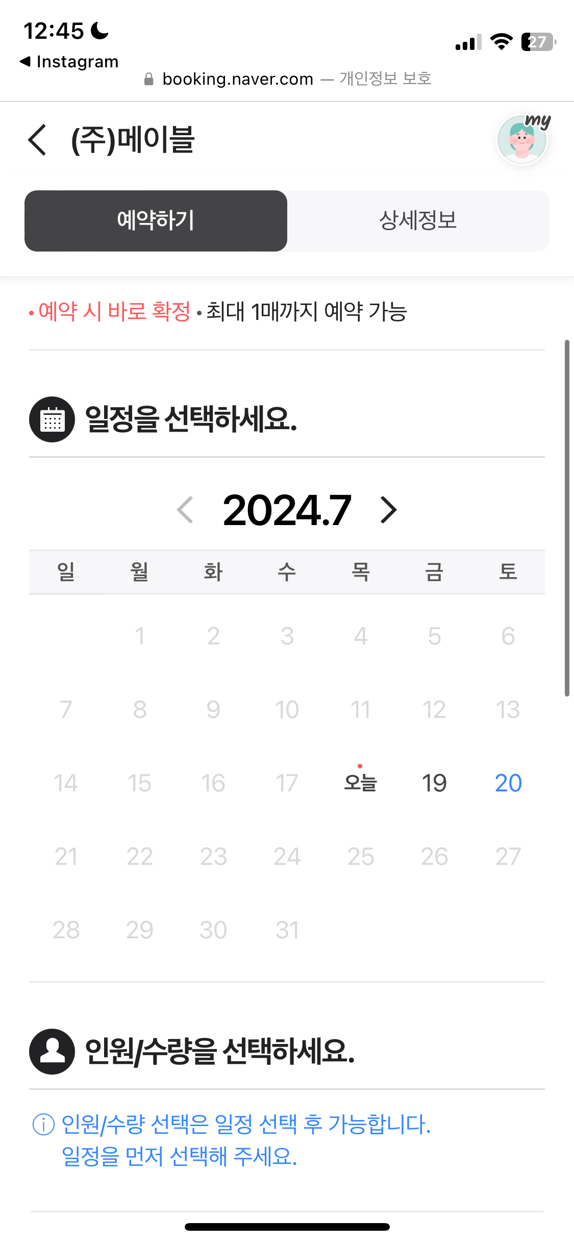 방문하셔야 해요! 예약은 id당 1명,