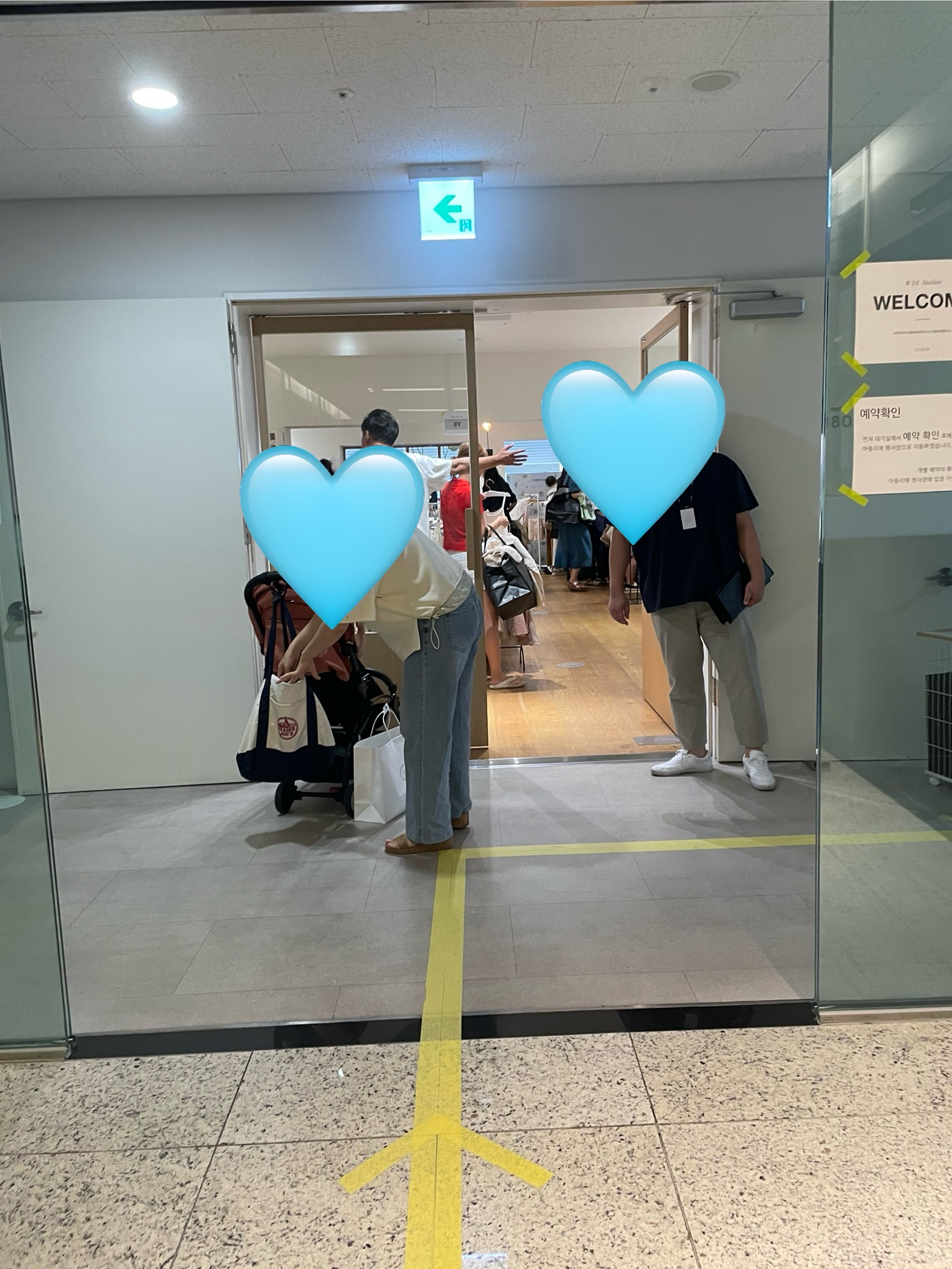 예약 시간 스티커도 옷에 붙여주세요.